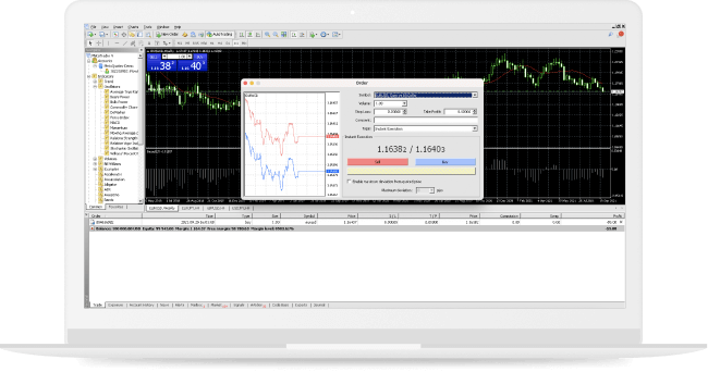 • Select from over 30 built-in technical indicators and get even more through the online MQL5 market and code base